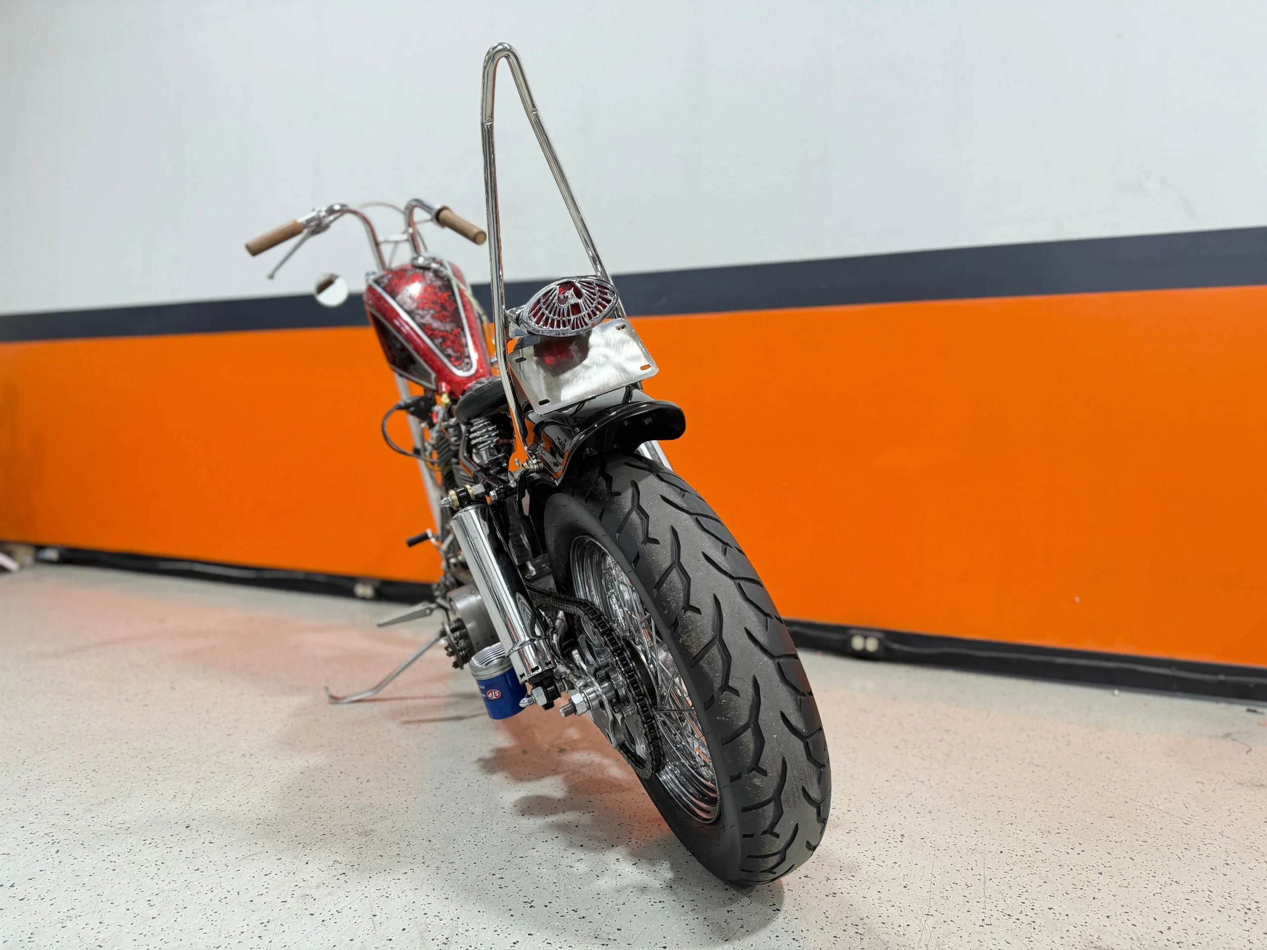 Low brow rear fender (the fender, struts and sissy bar are custom polished stainless)